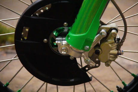 Установлены усиленные японские диски (железные и фрикционные) от японского бренда F.C.C. Также применена крышка сцепления со встроенной дополнительной форсункой, через которую подается масло и дополнительно охолождает и смазывает пакет дисков. Эта система продляет срок службы сцепления, дает возможность преодолевать сложные препятствия, где нужно «травить» сцеплением. Для облегчения выжима применены специальные тросы с уменьшенным трением за счет специальной полиуретановой оболочки стального троса, а также специальный переходной кронштейн легкого выжима. Радиатор Радиаторы системы охолождения надежно защищены алюминиевой рамкой с распорными втулками. На правом радиаторе в базе установлен вентилятор, также упакованный в алюминиевую защиту, чтобы в критический момент он не вышел из строя. Резиновые шланги были заменены на силиконовые, они лучше справляются с температурой и не высыхают со временем. Шасси Рама Все полноразмерные модели BRZ построены на новой раме K8. Она сделана по подобию рамы KTM 2017-2022 года. Благодаря стальной легкой раме мотоцикл получил правильную развесовку, он лучше рулится в поворотах и более стабилен на больших скоростях. С передней части рамы установлена алюминиевая защита двигателя. Подрамник Подрамник выполнен из алюминия. Легкий и прочный, в отличии от пластикового, выдерживает падения или нежелательного сальто, его можно выправить в случае деформации. Маятник В паре с новой рамой используется новый маятник.